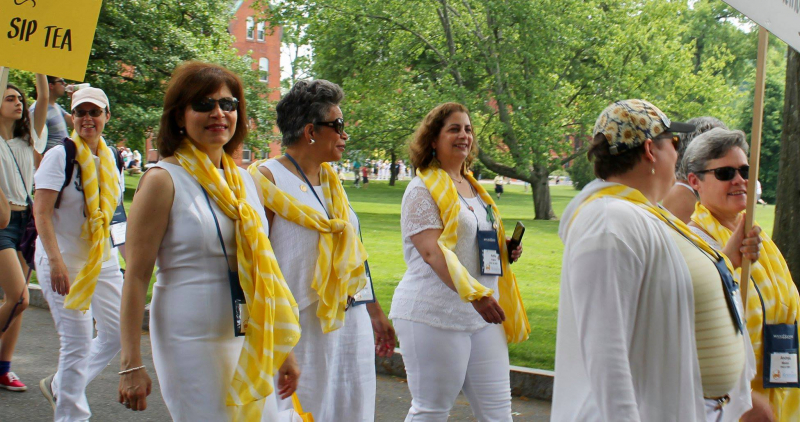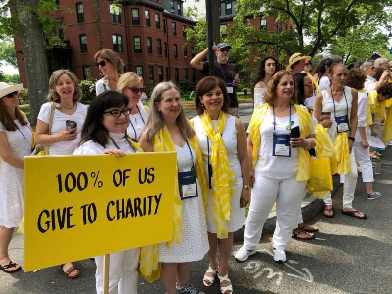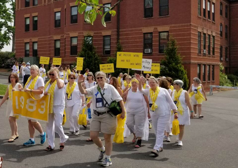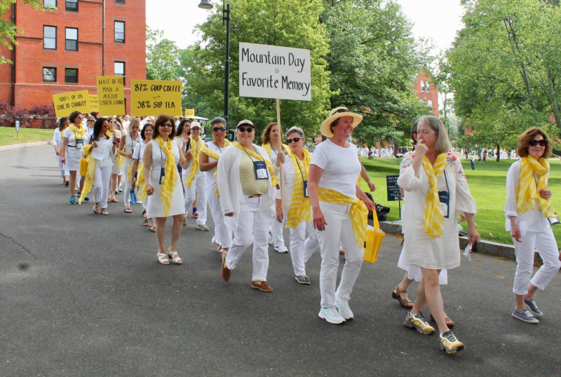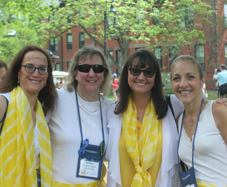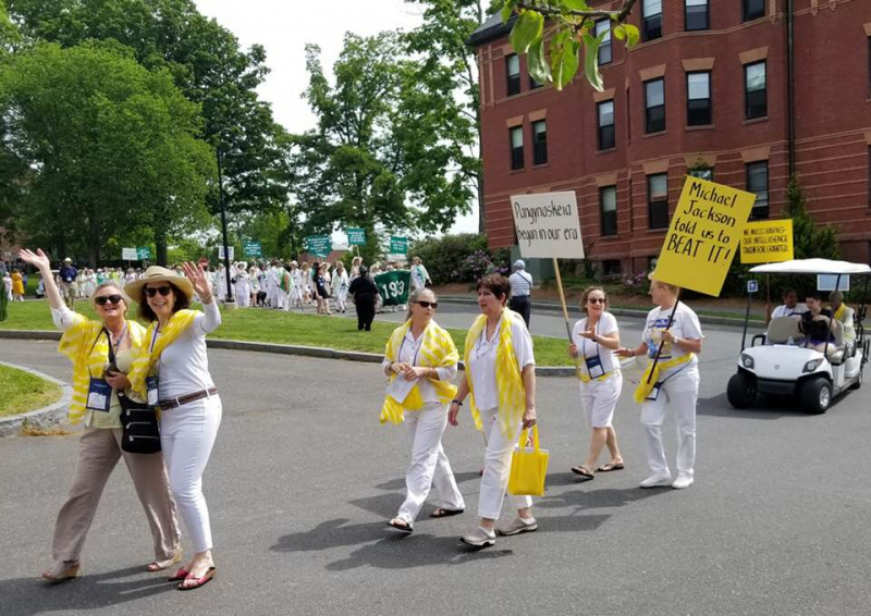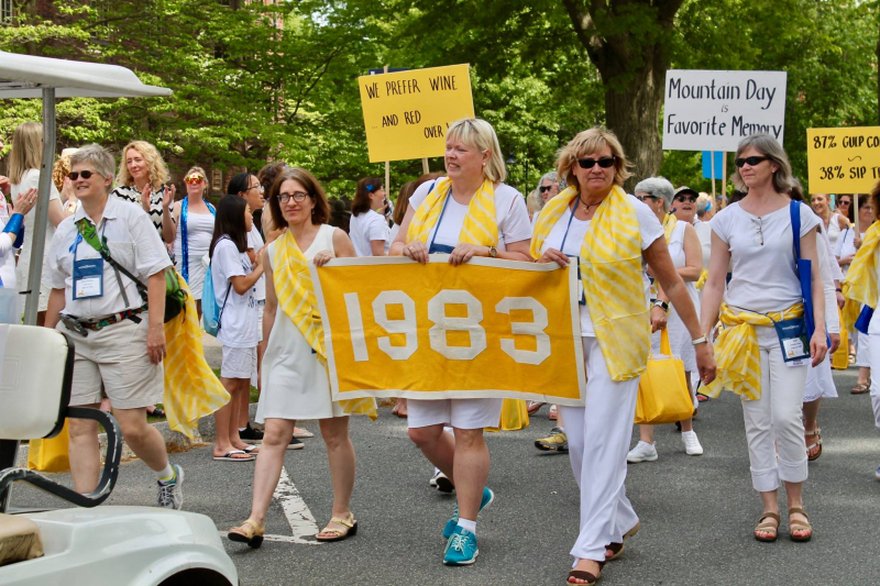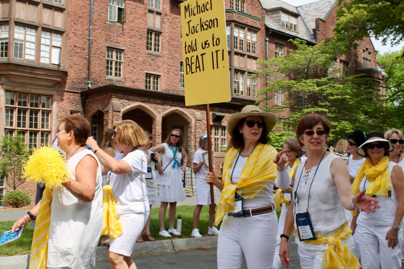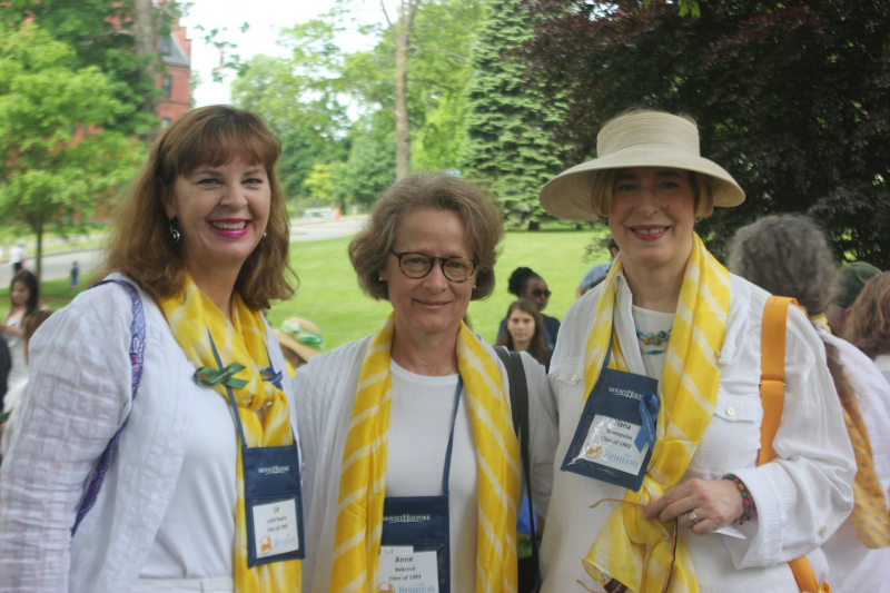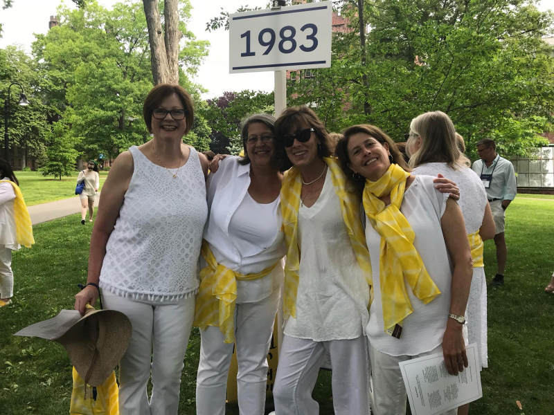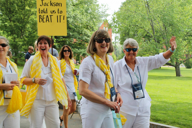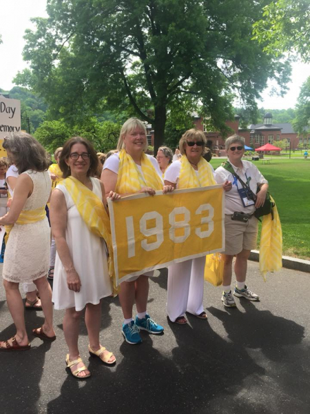 Also contributing to a fantastic reunion were Alecia Oberg McClure for the survey and booklet, Gaby Crane Peterson for the parade signs, Jerri Barrett for leading our Friday night discussion panel, Susan Sterman Proctor for leading our Saturday night book group, Betsy Luebbe Garrott and Pamela Smith for showcasing our class archives and junior show, Charlotte Lehmann for Class Memorial Service, Nancy Barlow for Friday night dinner and parade costume, Mindy Setzler Kolodziej for Friday night M&Cs, Jody Frenkel Terry for Saturday cocktail hour, Sarah James Landis for being our IT guru, and Lisa Hawley Hiley and Shelly Kelly Manners for hospitality/welcome.