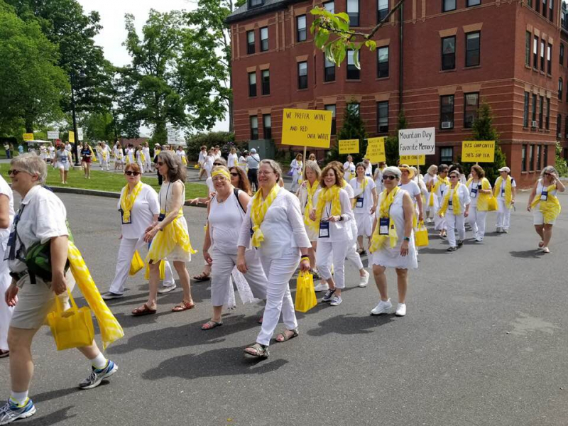 Saturday was a beautiful (and HOT!) day on campus, and the parade was a highlight as always. Many attended the Alumnae Association meeting, where Jerri Barrett gave her speech as Class President. Then on to the lunch and class photo, and then various wanderings around upper and lower lake, the Odyssey and all the other events MHC had to offer that weekend.